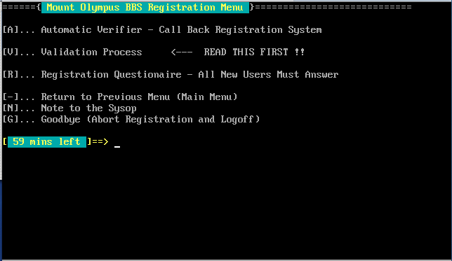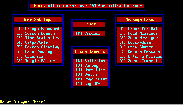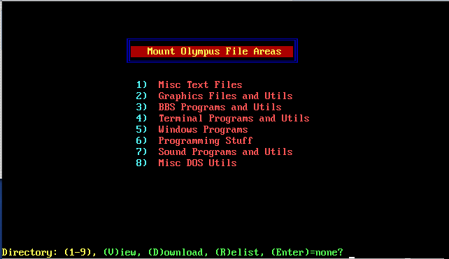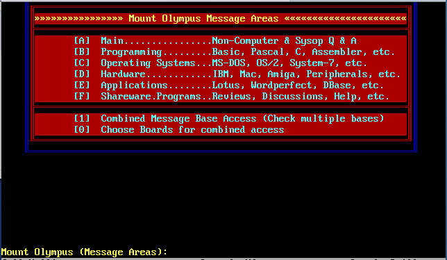 Mount Olympus BBS screen images: