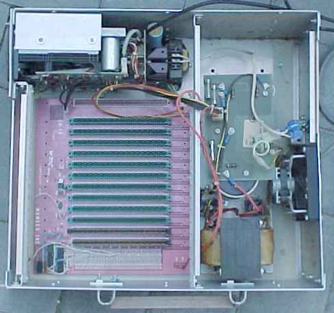 This system was built in 1978 to replace an Altair, using some of it's existing components, two of it's advantages being that it had a larger power supply as well as room internally for a 5-1/4" disk drive. As originally built, it had an 8080 CPU, a Solid State Music VB1 video interface board, and a homebuilt parallel keyboard interface built using plans from a magazine article. Later, the 8080 CPU was replaced with the Z80, which included a 1k ROM monitor program and built-in serial and parallel ports. This negated the need for the keyboard interface and video board and a serial terminal was then used for console I/O. The system also contained up to 40k of RAM, the mainboard has 12 S-100 bus slots, and it boots North Star DOS and BASIC from it's hard sectored disk system. Shortly after being upgraded to the Z80 CPU, the system was replaced with an Osborne 1 and retired. The 1k ROM monitor program was written by the original builder of this machine, as was the software used to interface the VB1 video interface with a SWTP KBD5 keyboard, ProTech 3P+S IO board, and the North Star mini floppy in an Altair 8800.